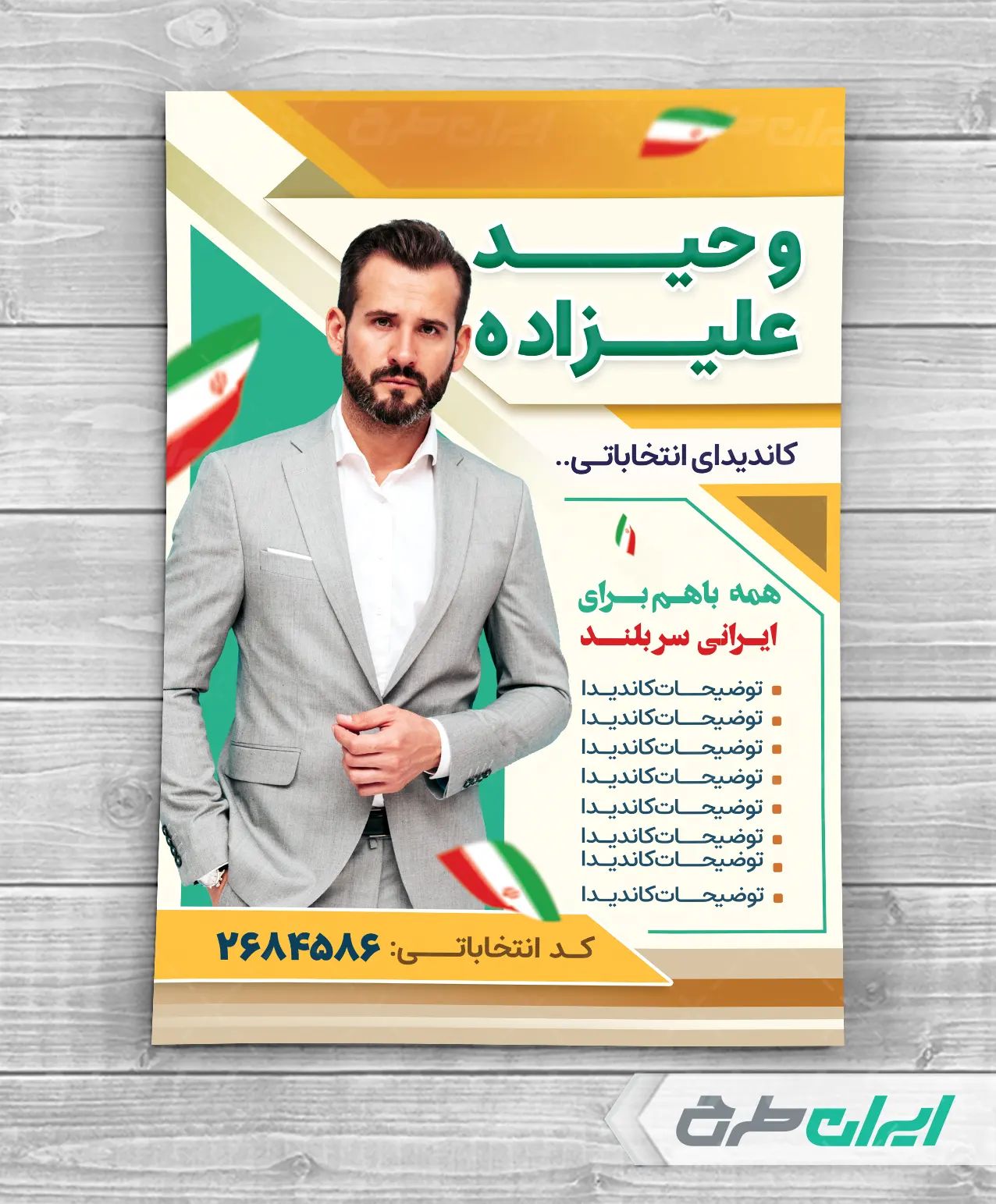 طرح پوستر انتخاباتی شامل: