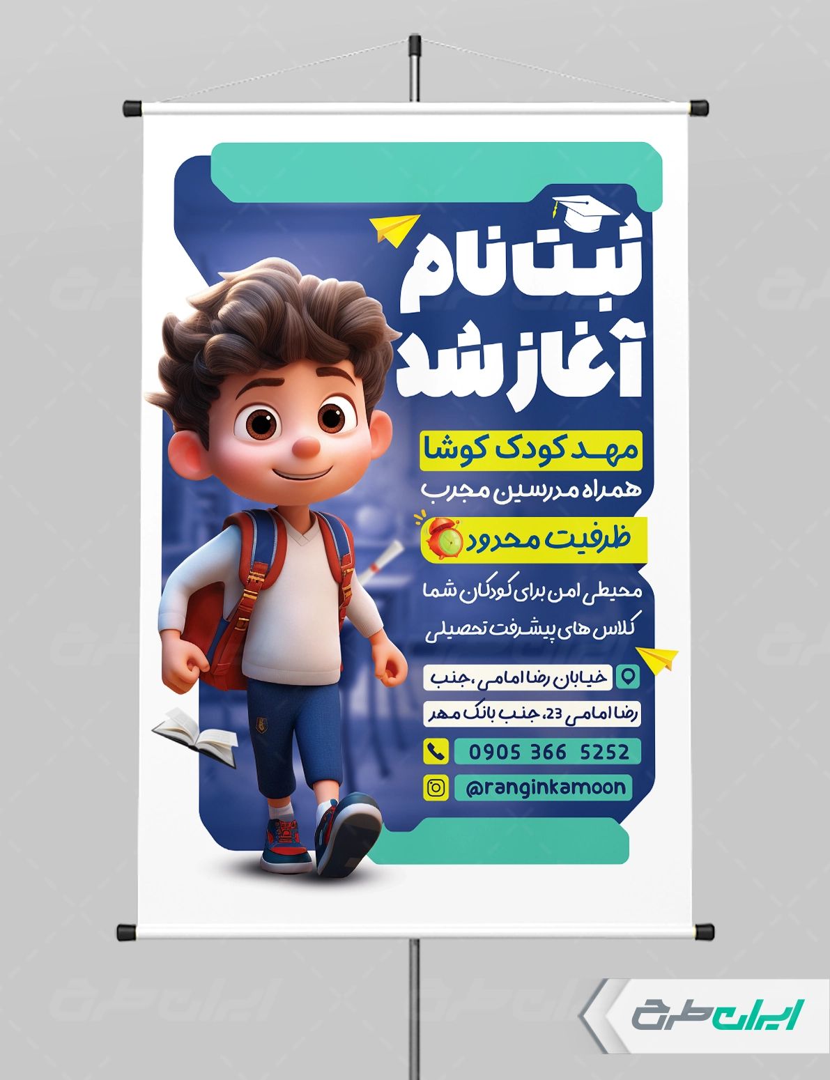 طرح بنر لایه باز مهد کودک و پیش دبستانی، توسط طراحان ایران طرح جهت نصب سردر این آموزشگاه ها، طراحی و در دسترس کاربران سایت قرار گرفته است.