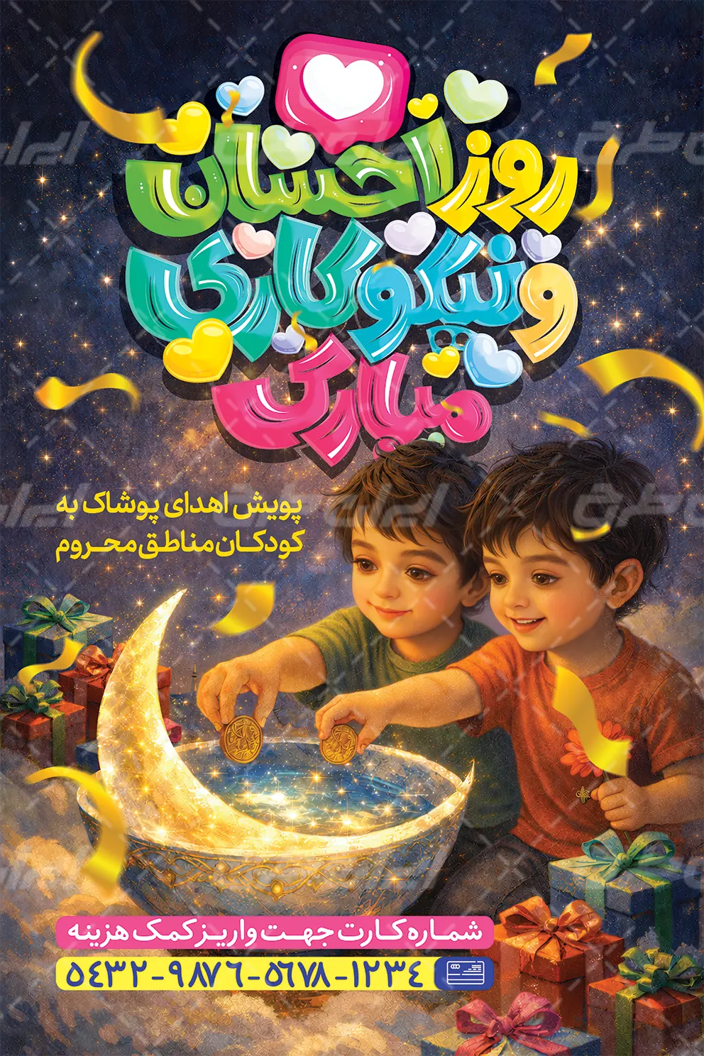 بنر روز احسان و نیکو کاری، توسط تیم حرفه ای ایران طرح جهت استفاده کاربران سایت طراحی و به صورت لایه باز در دسترس کاربران قرار گرفته است.