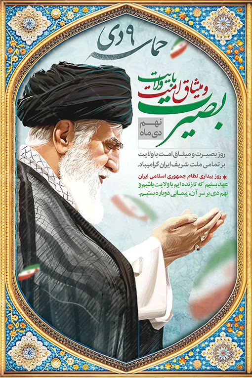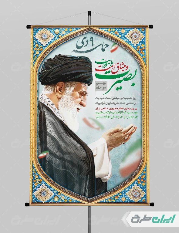 تصویر رهبری و متن گرامیداشت حماسه نه دی می باشد که توسط تیم ایران طرح طراحی شده است.