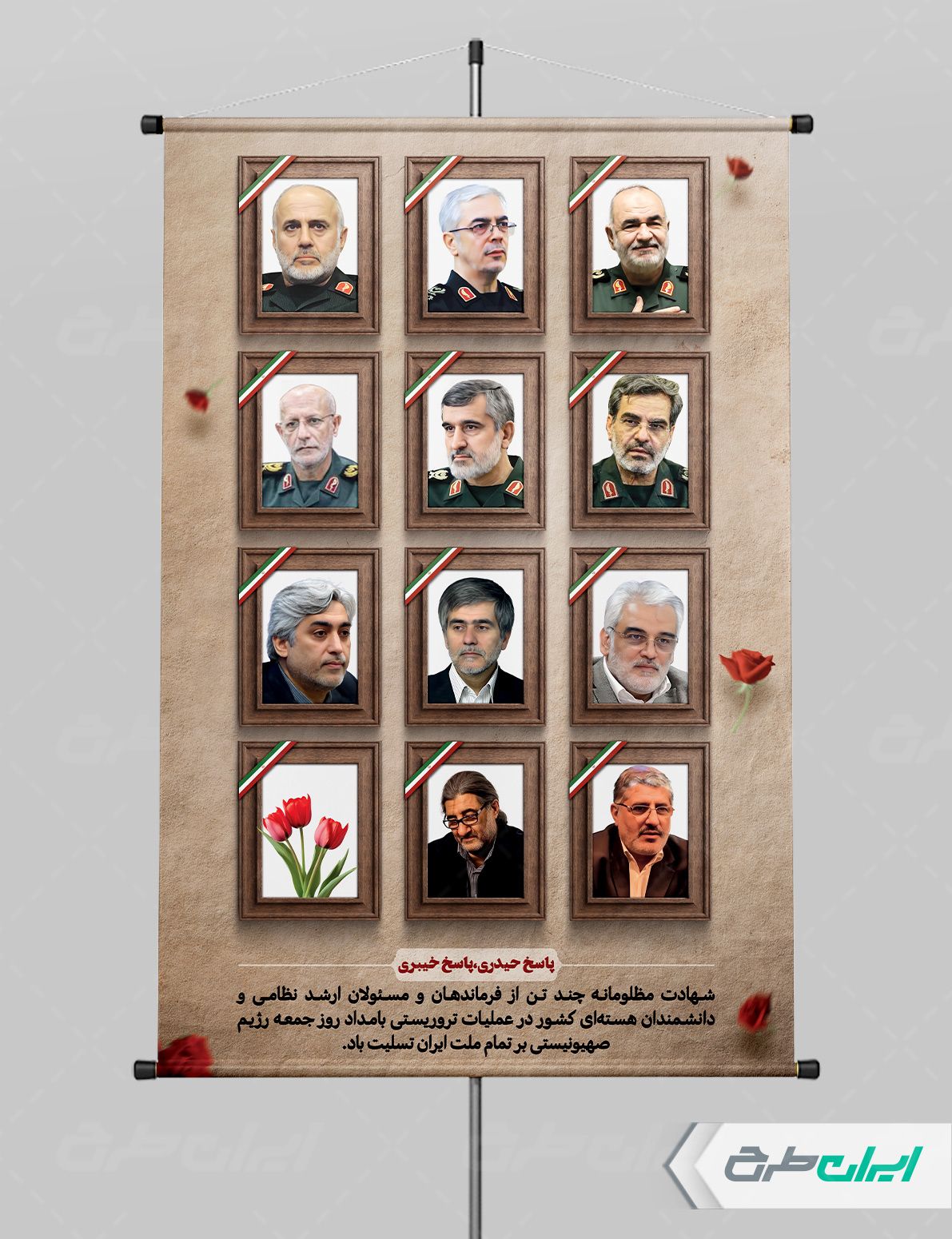 پوستر حمله اسرائیل و شهادت سرداران سپاه و دانشمندان هسته ای