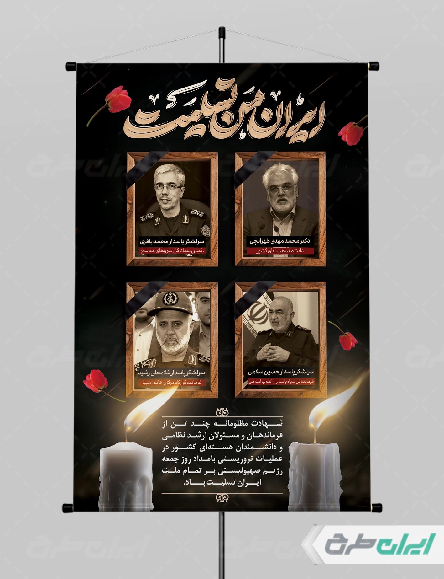 طرح بنر شهادت فرماندهان سپاه توسط تیم ایران طرح طراحی و در دسترس کاربران سایت قرار گرفته است.