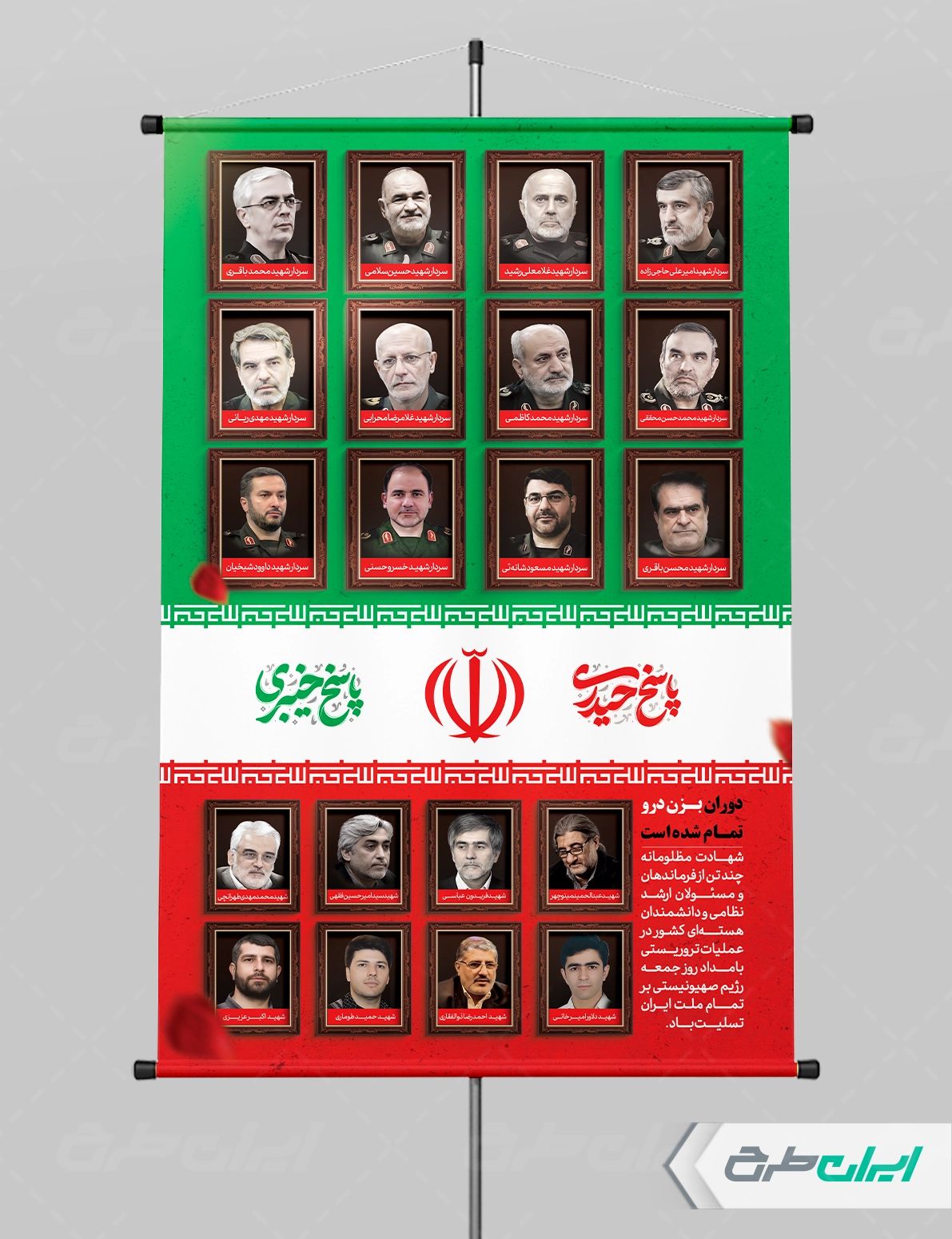 طرح بنر شهادت فرماندهان سپاه توسط تیم ایران طرح طراحی و در دسترس کاربران سایت قرار گرفته است.