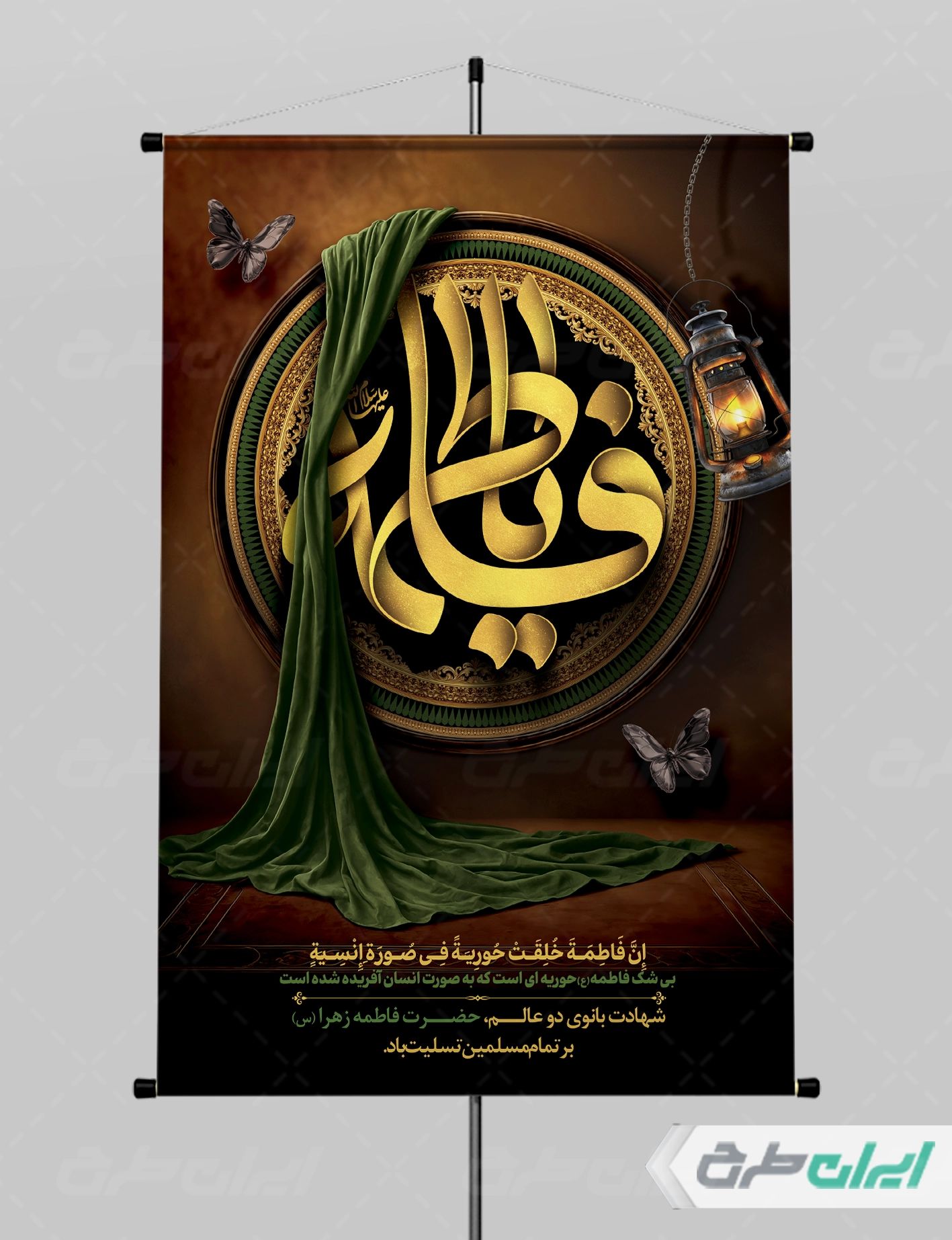 طرح بنر سالگرد شهادت حضرت فاطمه زهرا شامل: