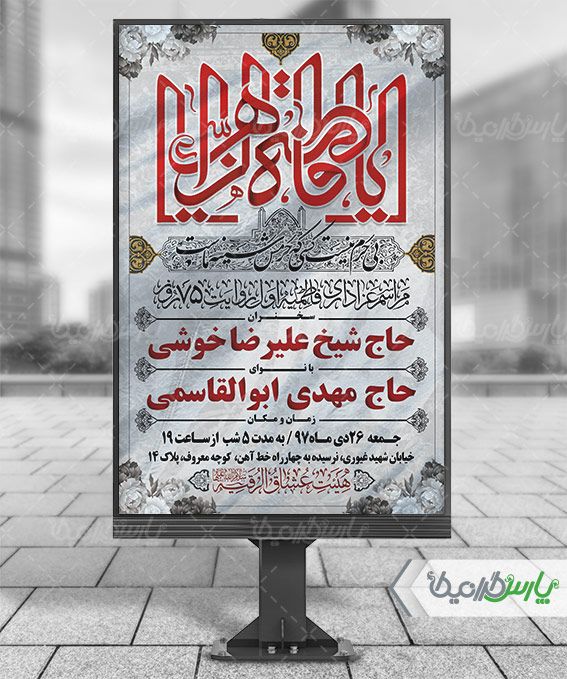 پوستر شهادت حضرت فاطمه (س) با پسوند psd طراحی شده و در نرم افزار فتوشاپ قابل یرایش است .