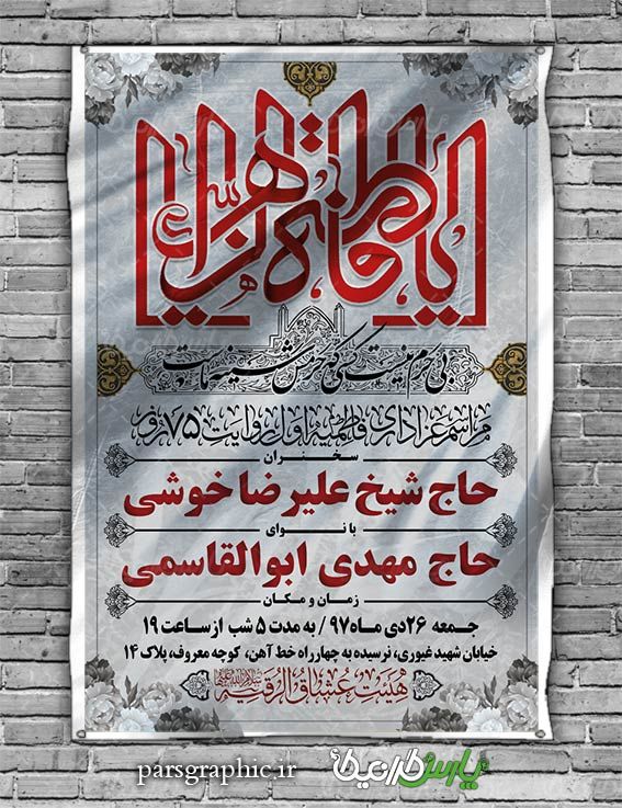 بنر دهه فاطمیه , بنر پشت منبر , بنر اطلاع رسانی مراسم دهه فاطمیه , بنر شهادت حضرت فاطمه , طرح بنر شهادت حضرت فاطمه , بنر منبر , دهه فاطمیه , شهادت حضرت فاطمه , بنر شهادت حضرت زهرا , طرح بنر دهه فاطمیه , بنر لایه باز شهادت حضرت فاطمه ,