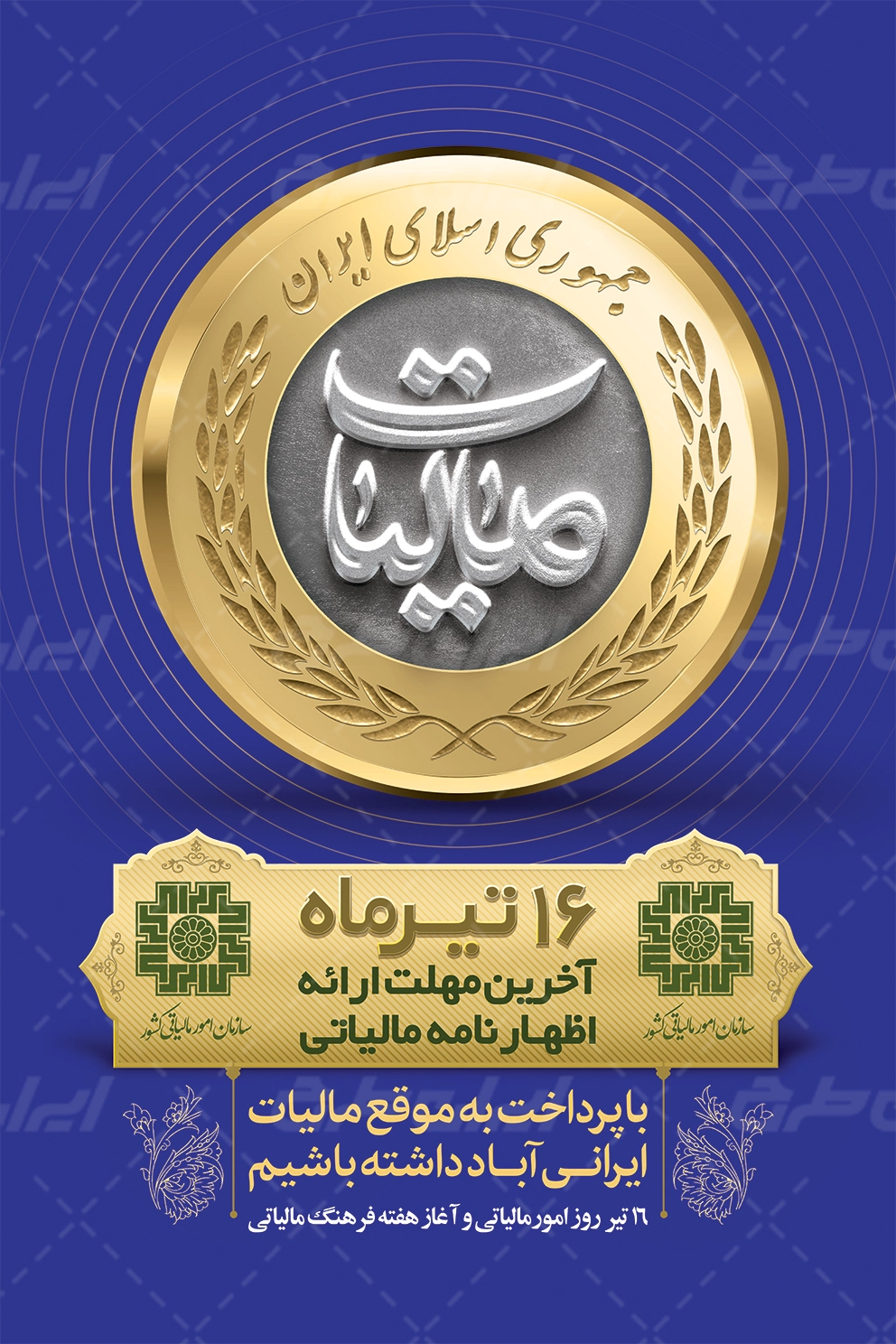 بنر روز امور مالیاتی، توسط تیم حرفه ای ایران طرح جهت استفاده کاربران سایت طراحی و به صورت لایه باز در دسترس کاربران قرار گرفته است.