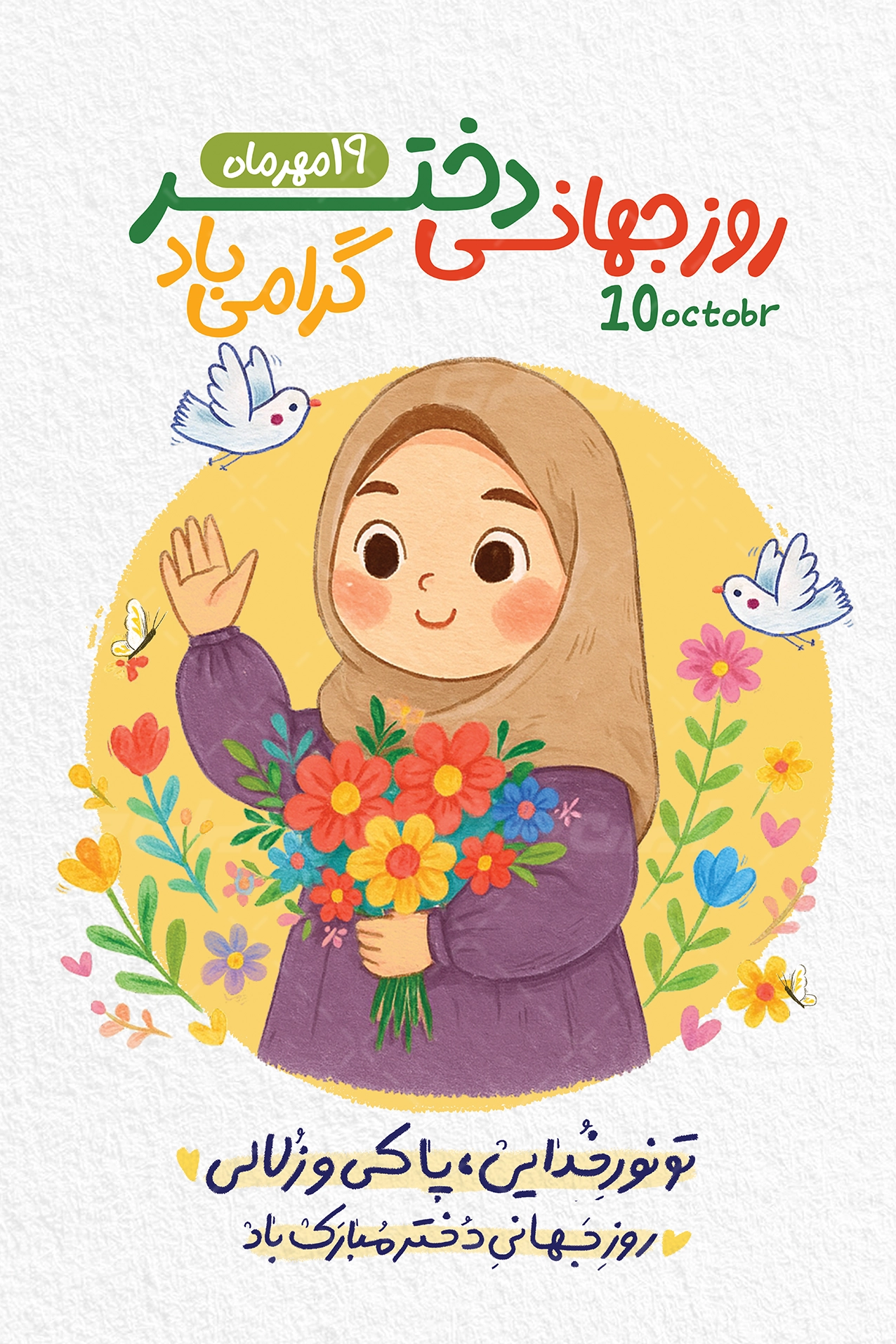 تصویردختر و متن گرامیداشت روز جهانی دختر می باشد که توسط تیم ایران طرح طراحی شده است.