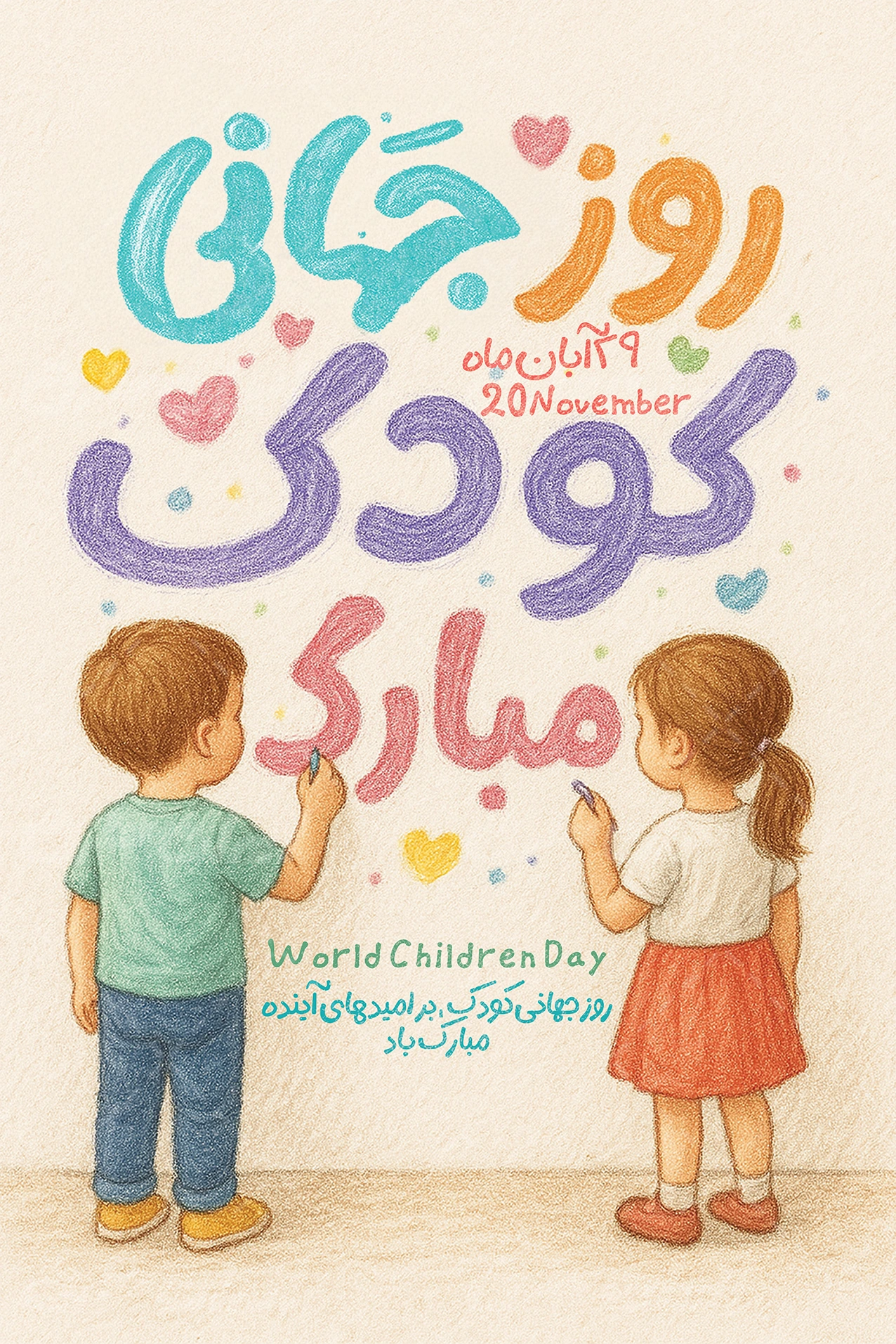 تصویر کودک و متن گرامیداشت روز کودک میباشد که توسط تیم خلاق ایران طرح طراحی شده است.