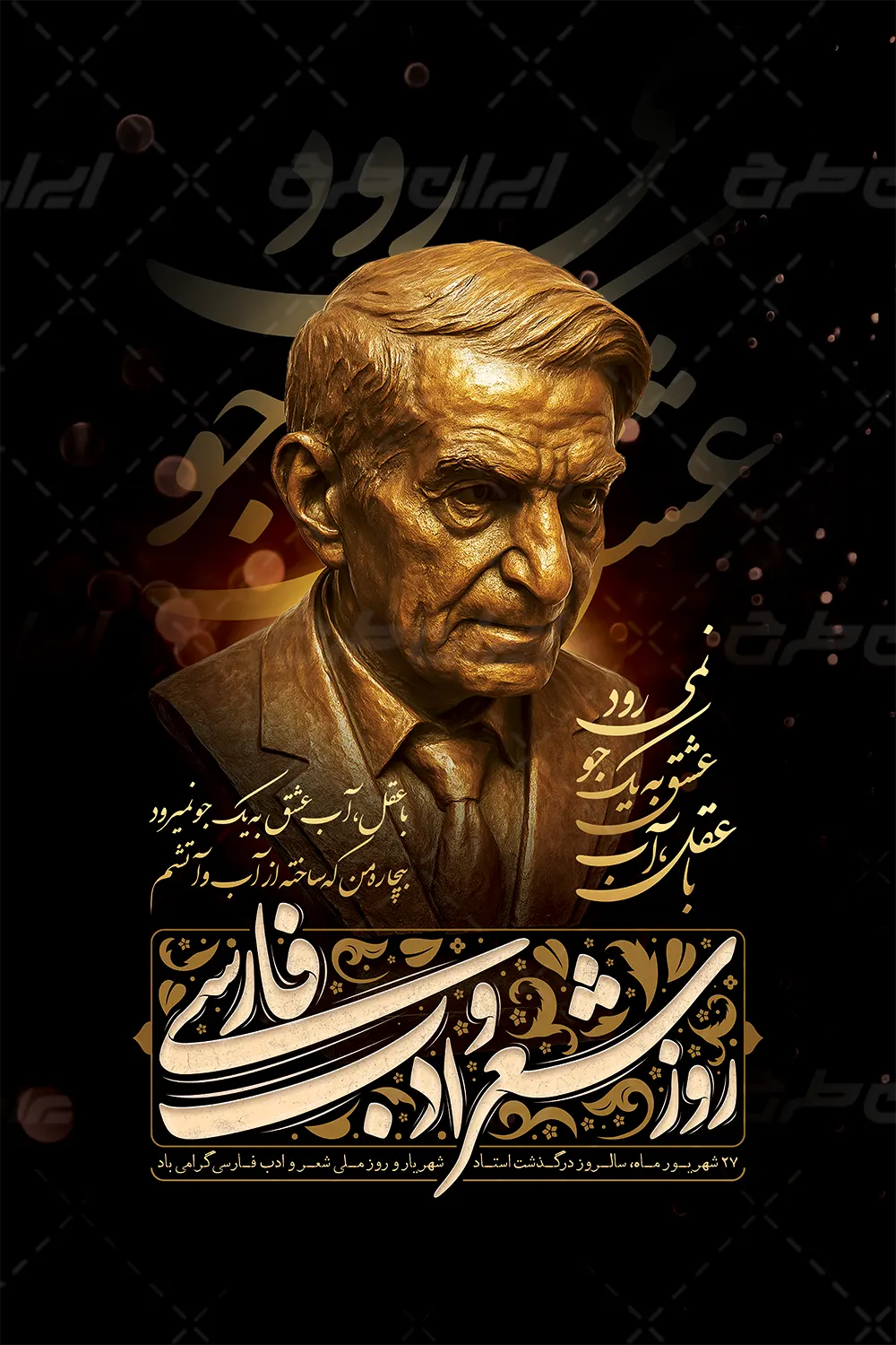 تایپوگرافی شعر و ادب پارسی، تصویر تندیس استاد شهریار و متن بزرگداشت سالروز شعر و ادب می باشد که توسط تیم ایران طرح طراحی شده است.