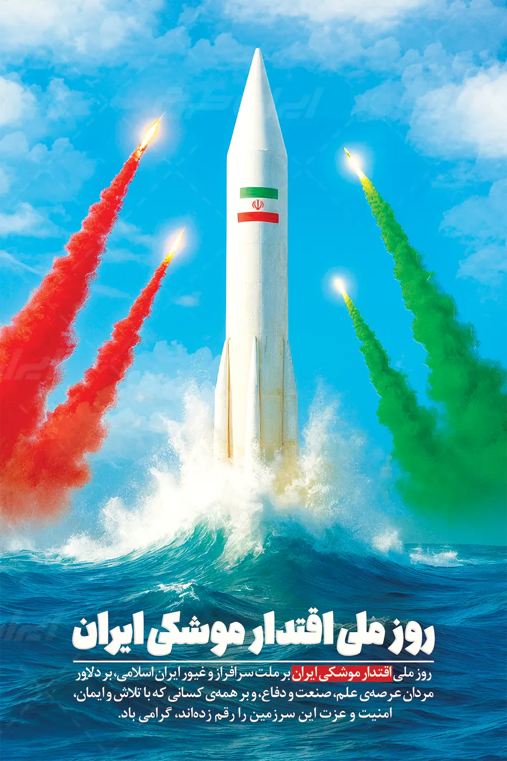 تصویر موشک و متن گرامیداشت روز ملی اقتدار موشکی ایران می باشد که توسط تیم ایران طرح طراحی شده است.