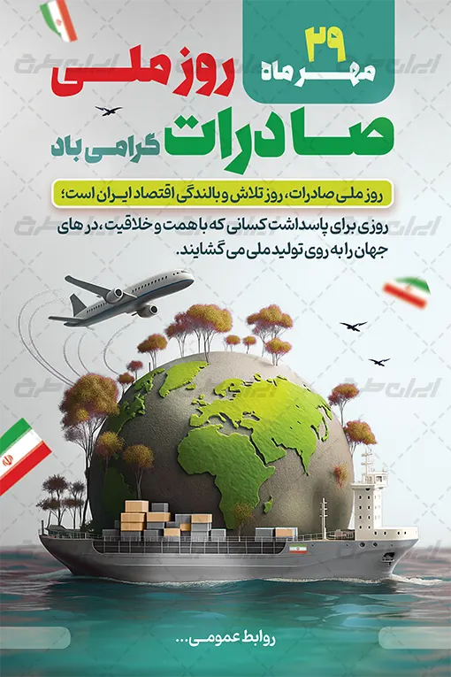 تصویر مرتبط و متن گرامیداشت روز ملی صادرات می باشد که توسط تیم ایران طرح طراحی شده است.