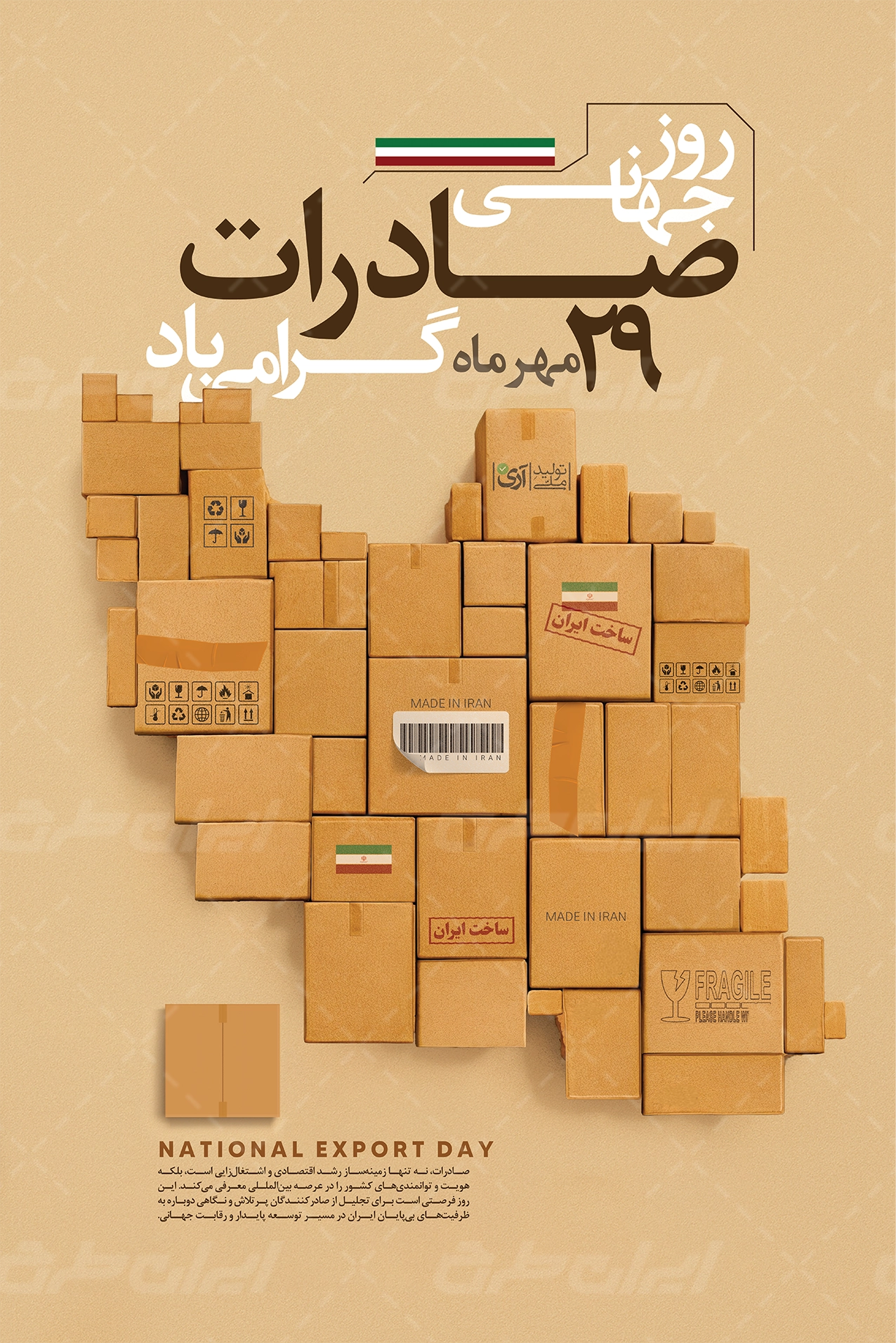طرح بنر لایه باز روز ملی صادرات، توسط تیم با تجربه ایران طرح جهت استفاده کاربران سایت طراحی و به صورت لایه باز در دسترس کاربران قرار گرفته است.