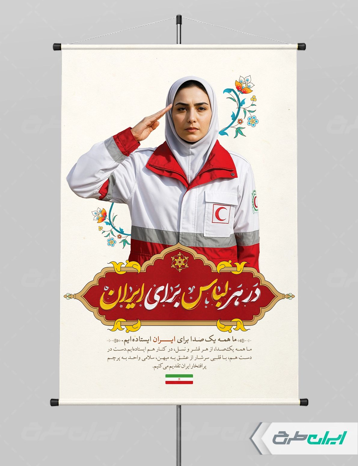 تصویر نیروی هلال احمر و متن گرامیداشت روز هلال احمر می باشد که توسط تیم ایران طرح طراحی شده است.