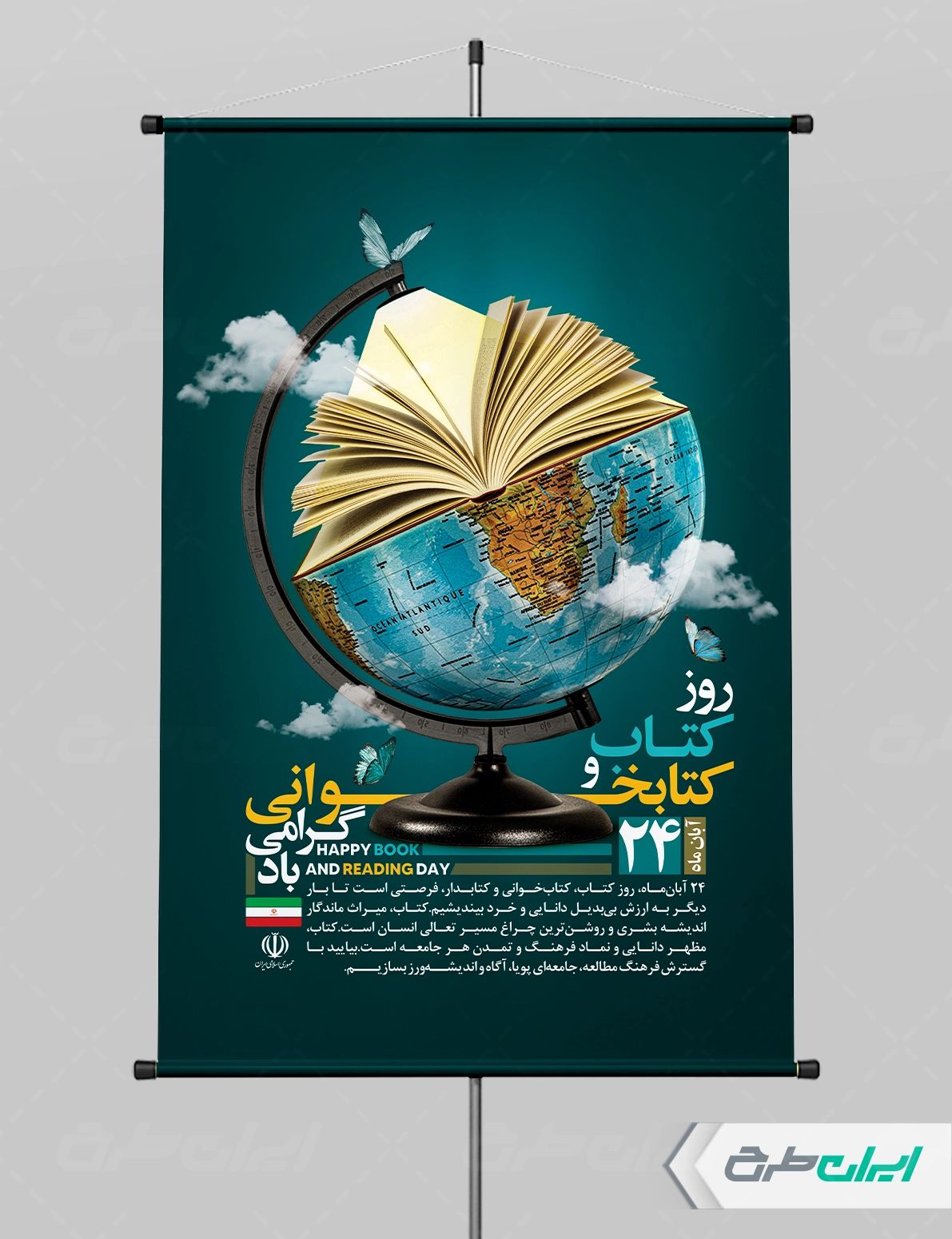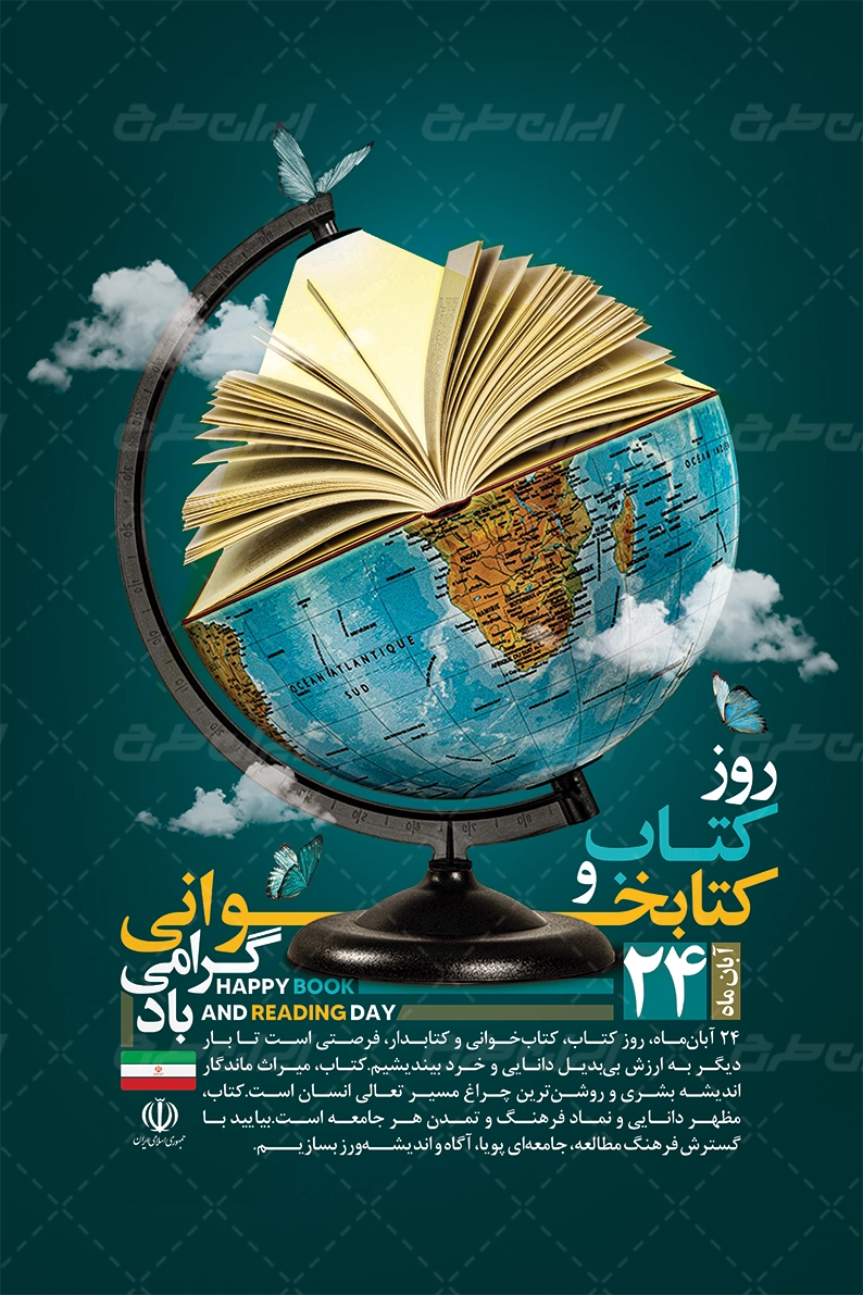 تصویر کتاب و متن گرامیداشت روز کتاب و کتابخوانی میباشد که توسط تیم خلاق ایران طرح طراحی شده است.
