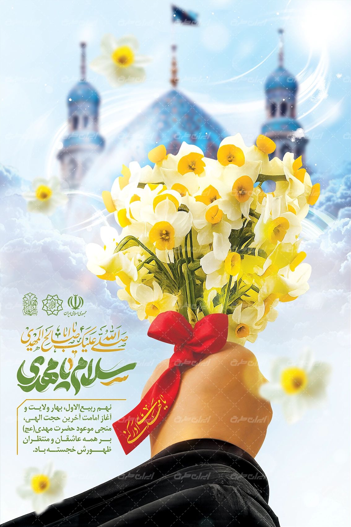طرح پوستر آغاز امامت حضرت مهدی شامل: