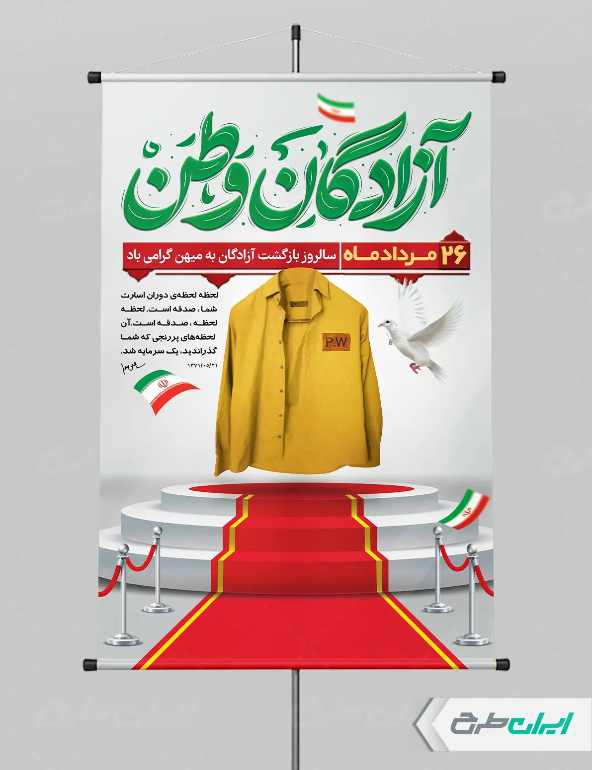 بنر سالروز بازگشت آزادگان، توسط تیم حرفه ای ایران طرح جهت استفاده کاربران سایت طراحی و به صورت لایه باز در دسترس کاربران قرار گرفته است.
