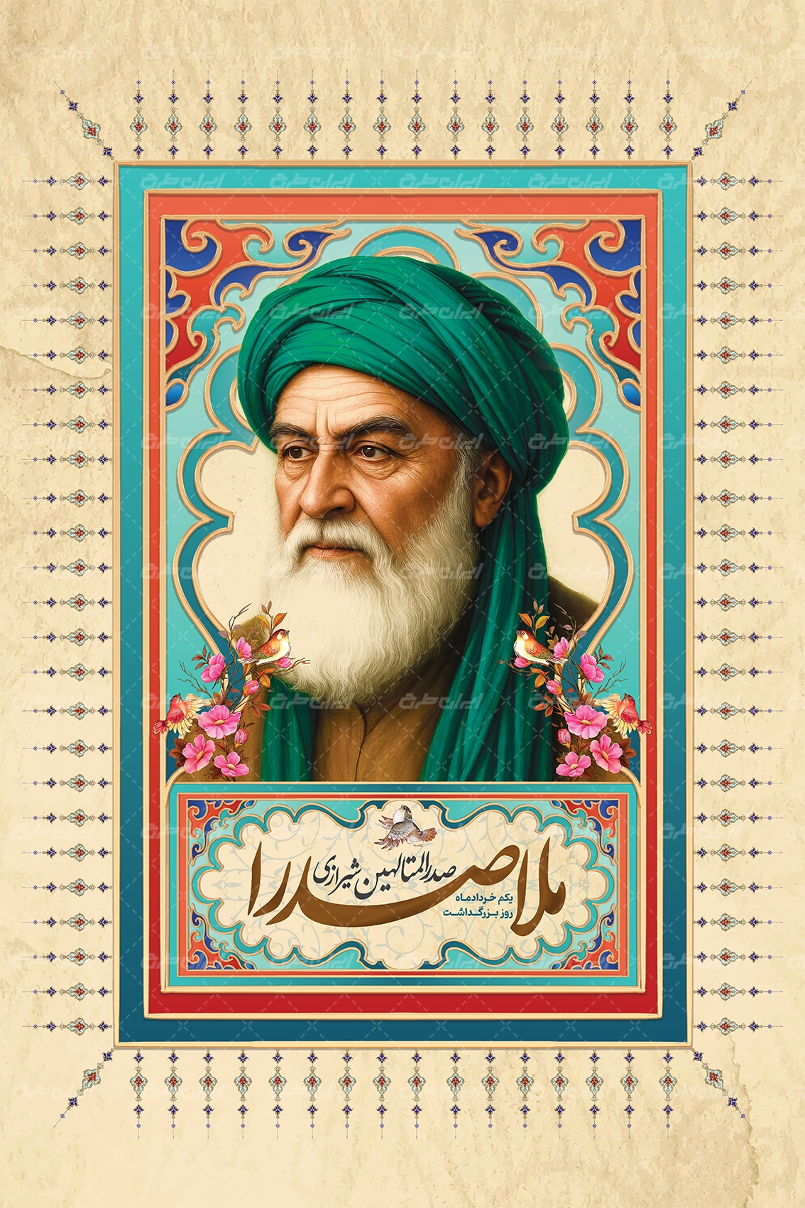 تصویر ملاصدرا و متن گرامیداشت سالروز بزرگداشت ملاصدرا می باشد که توسط تیم ایران طرح طراحی شده است.