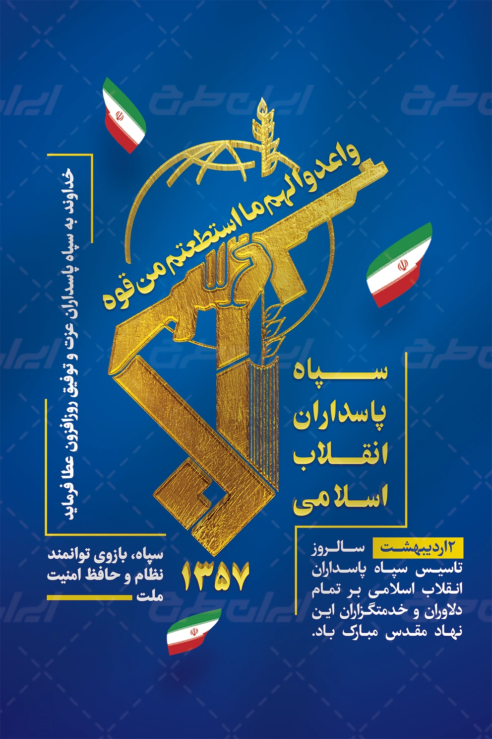 تصویر پرچم ایران و متن گرامیداشت روز تاسیس سپاه می باشد که توسط تیم ایران طرح طراحی شده است.