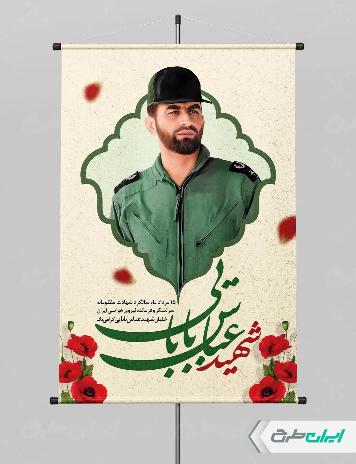 طرح لایه باز بنر سالروز شهادت شهید بابایی شامل: