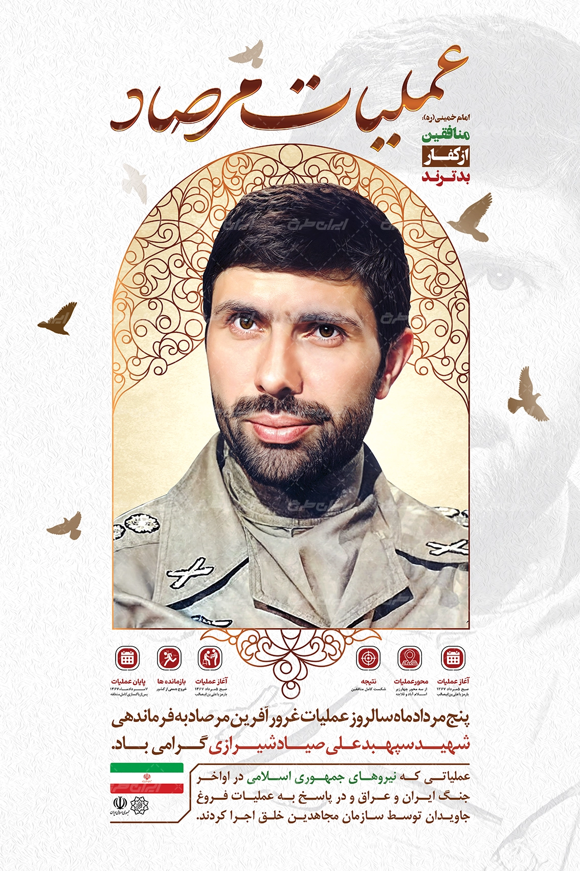 تصویر شهید صیاد شیرازی و متن مرتبط با روز عملیات مرصاد می باشد که توسط طراحان ایران طرح در نرم افزار فتوشاپ طراحی شده است.