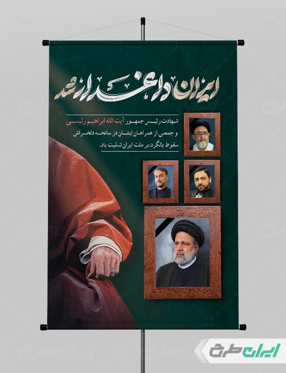 بنر تسلیت شهادت سید ابراهیم رئیسی، توسط تیم حرفه ای ایران طرح جهت استفاده کاربران سایت طراحی و به صورت لایه باز در دسترس کاربران قرار گرفته است.