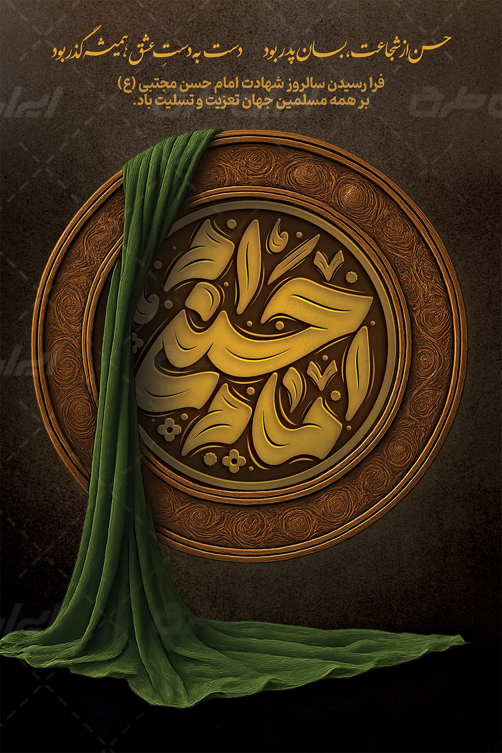طرح پوستر شهادت امام حسن مجتبی (ع) شامل: