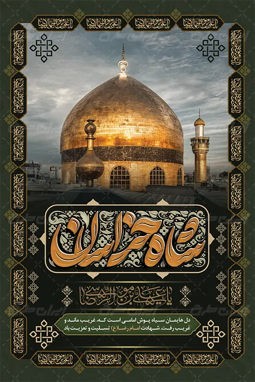 تایپوگرافی شاه خراسان، حاشیه تذهیب، و متن تسلیت شهادت امام رضا می باشد که توسط تیم ایران طرح طراحی شده است.