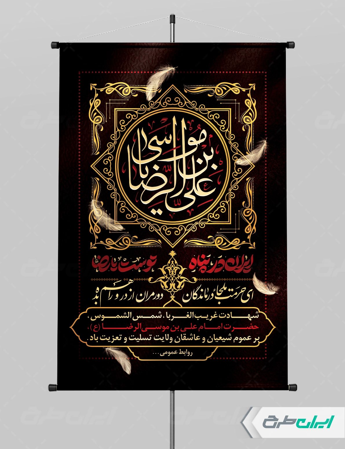 طرح بنر لایه باز شهادت امام رضا، توسط تیم با تجربه ایران طرح جهت استفاده کاربران سایت طراحی و به صورت لایه باز در دسترس کاربران قرار گرفته است.