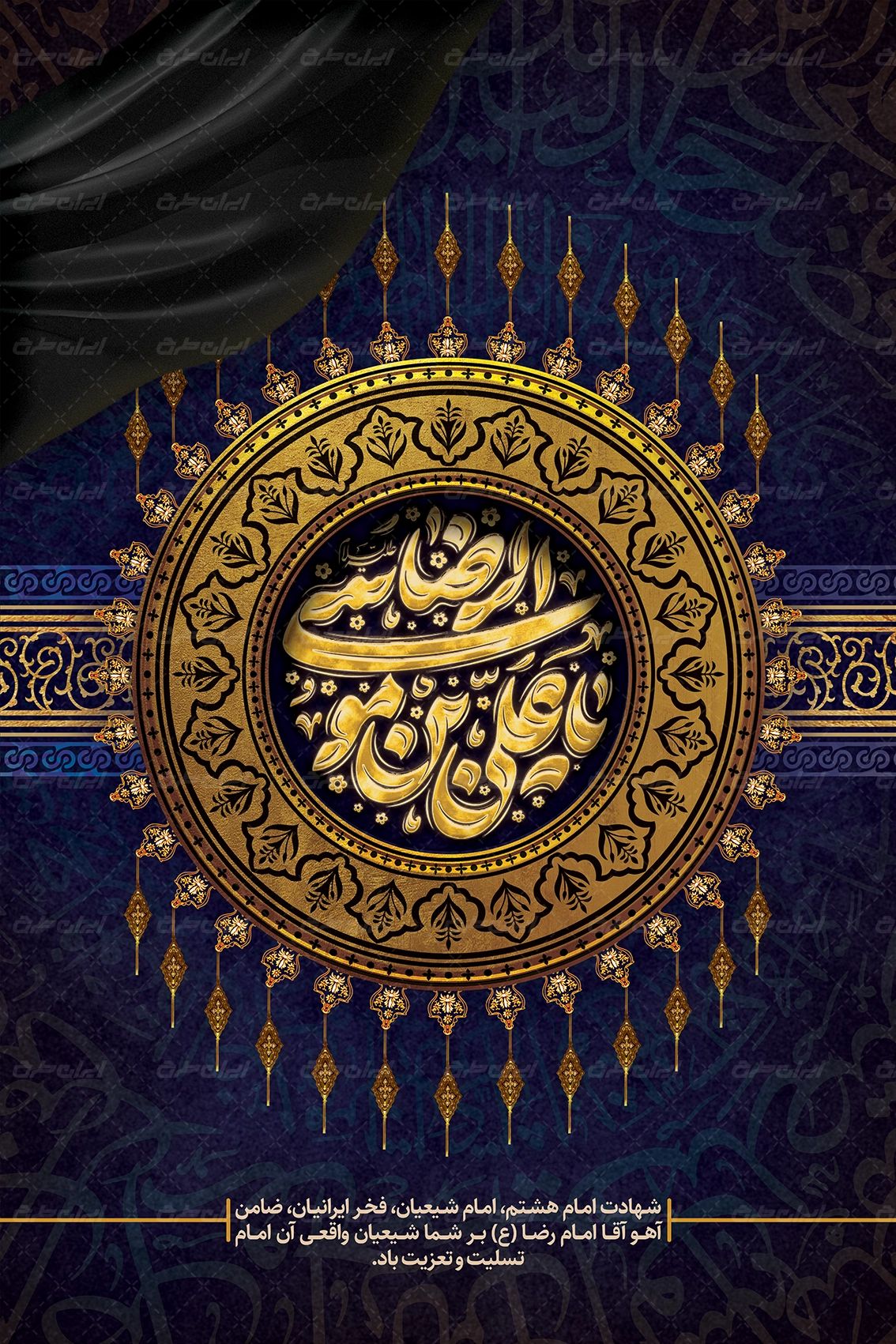 تایپوگرافی یا علی بن موسی الرضا، حاشیه تذهیب، و متن تسلیت شهادت امام رضا می باشد که توسط تیم ایران طرح طراحی شده است.