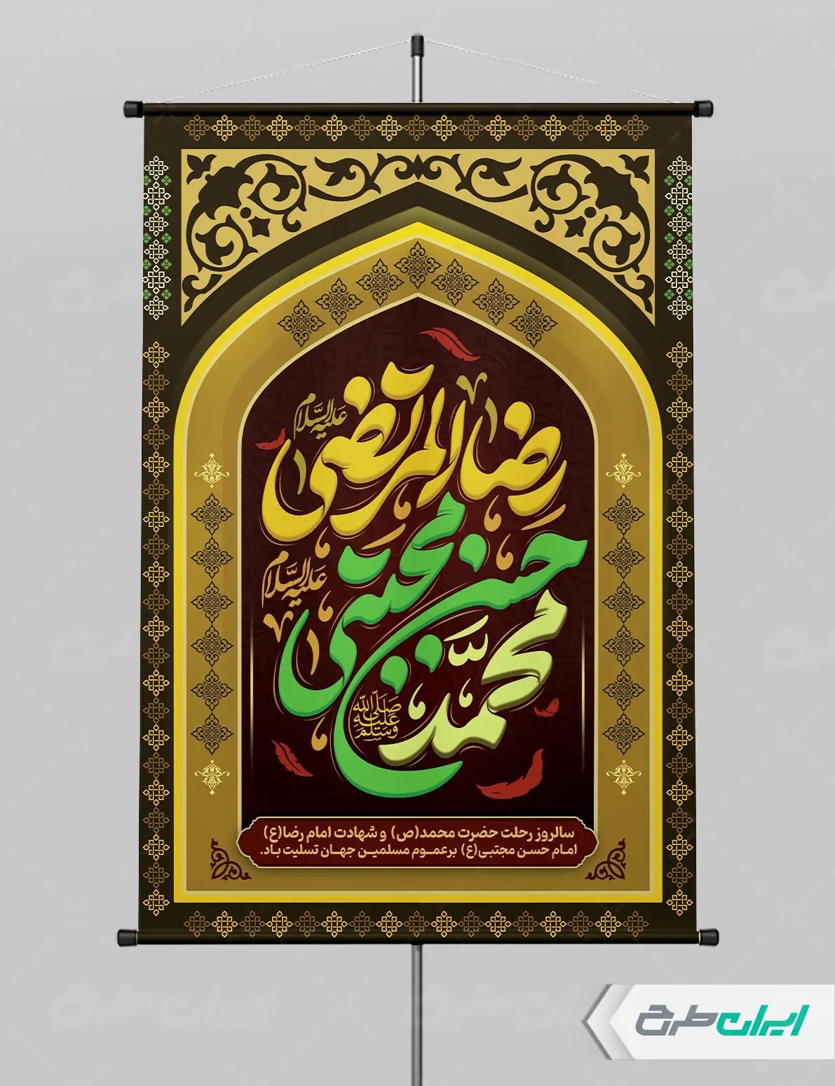 طرح بنر شهادت امام رضا و امام حسن مجتبی و رحلت پیامبر اکرم (ص)