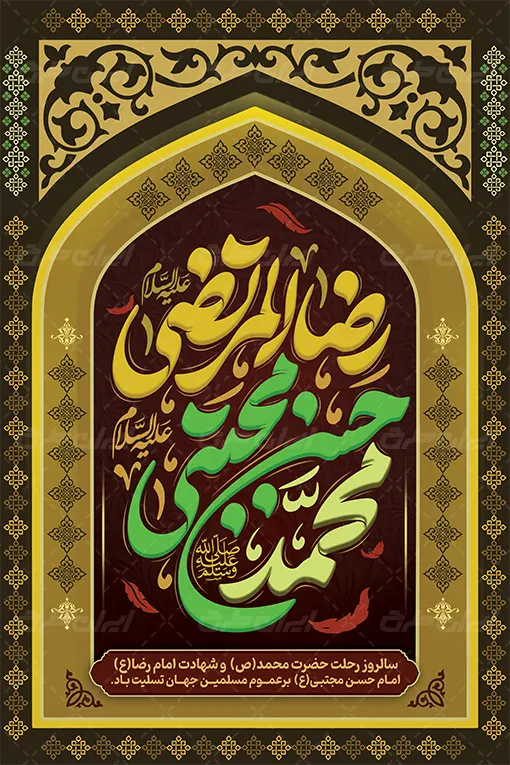 پوستر شهادت امام رضا و امام حسن مجتبی و رحلت پیامبر اکرم (ص)