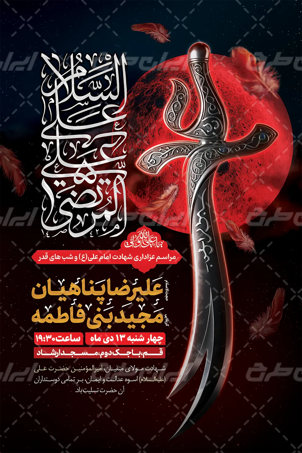 ضمنا به دلیل لایه باز بود طرح بنر شهادت امام علی (ع) می توانید با استفاده از نرم افزار فتوشاپ تغییرات دلخواه خود را اعمال کنید.