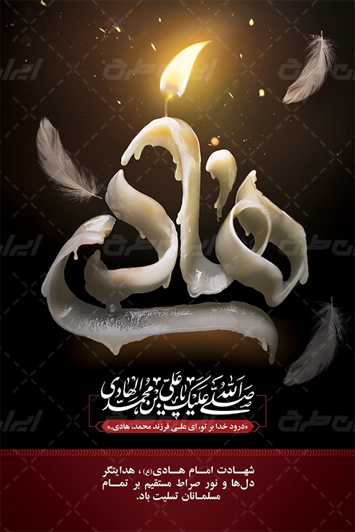 تصویر شمع، تذهیب، نقوش مذهبی متن مرتبط با مراسم عزاداری شهادت امام هادی می باشد که توسط تیم ایران طرح طراحی شده است.
