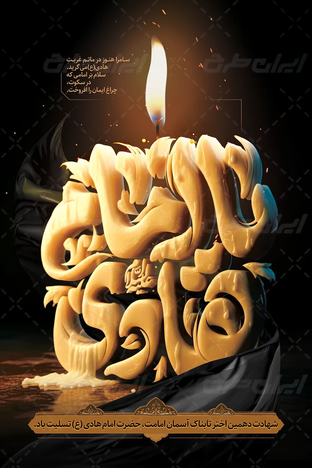 - طراحی بنر با استفاده از تایپوگرافی یا امام هادی مناسب با طرح بنر شهادت امام هادی