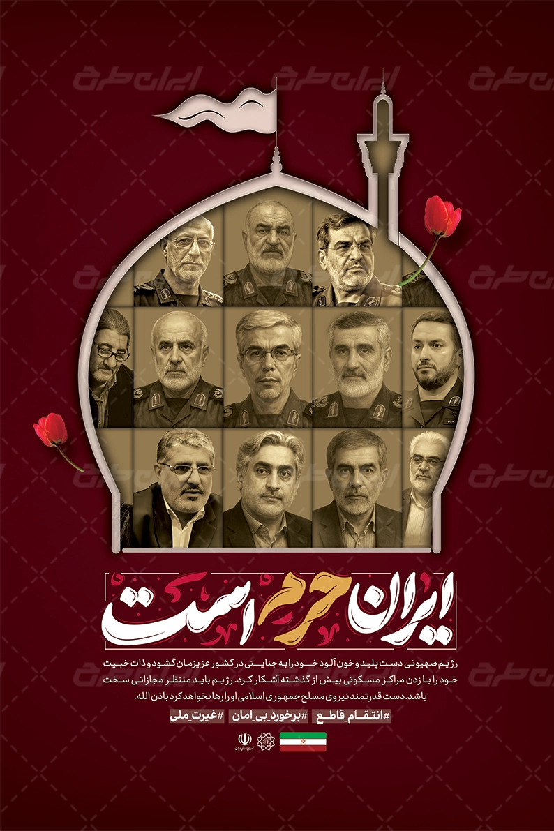 پوستر شهادت سرداران سپاه و دانشمندان هسته ای با تایپوگرافی ایران حرم است