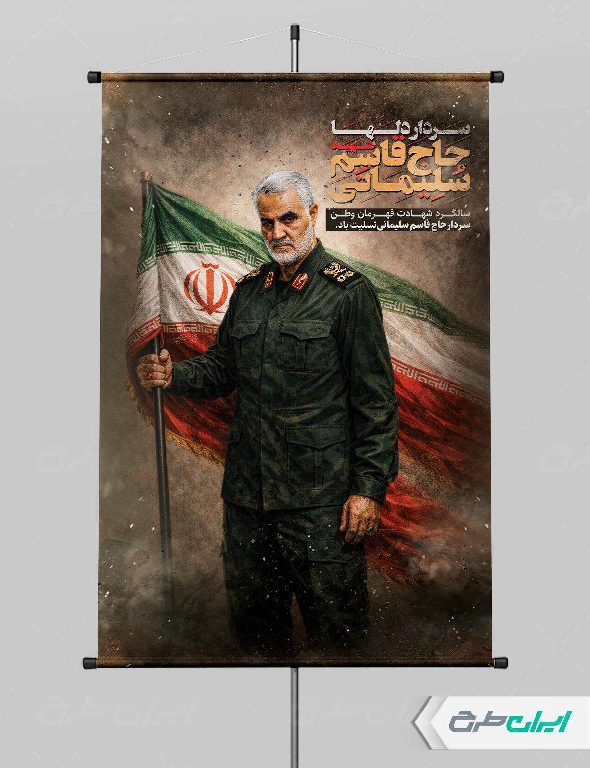 مشخصات فنی طرح بنر لایه باز شهادت حاج قاسم سلیمانی