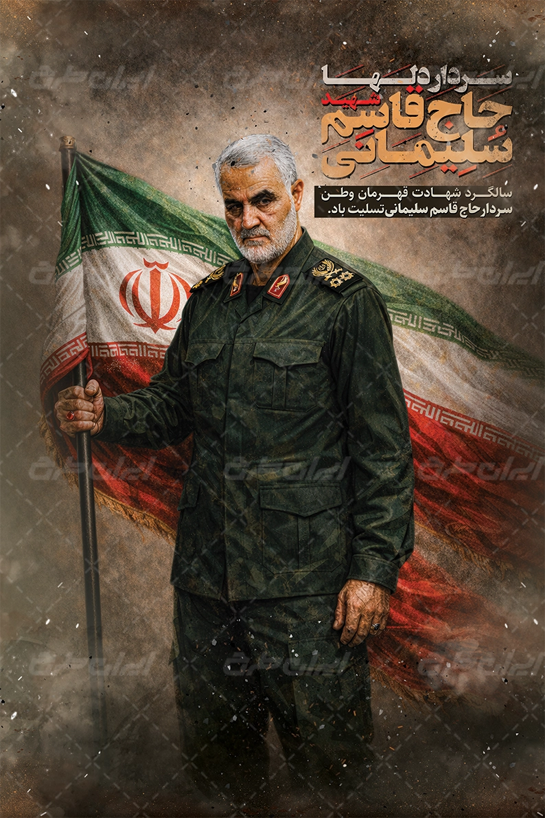 بنر شهادت سردار قاسم سلیمانی ، توسط تیم حرفه ای ایران طرح جهت استفاده کاربران سایت طراحی و به صورت لایه باز در دسترس کاربران قرار گرفته است.