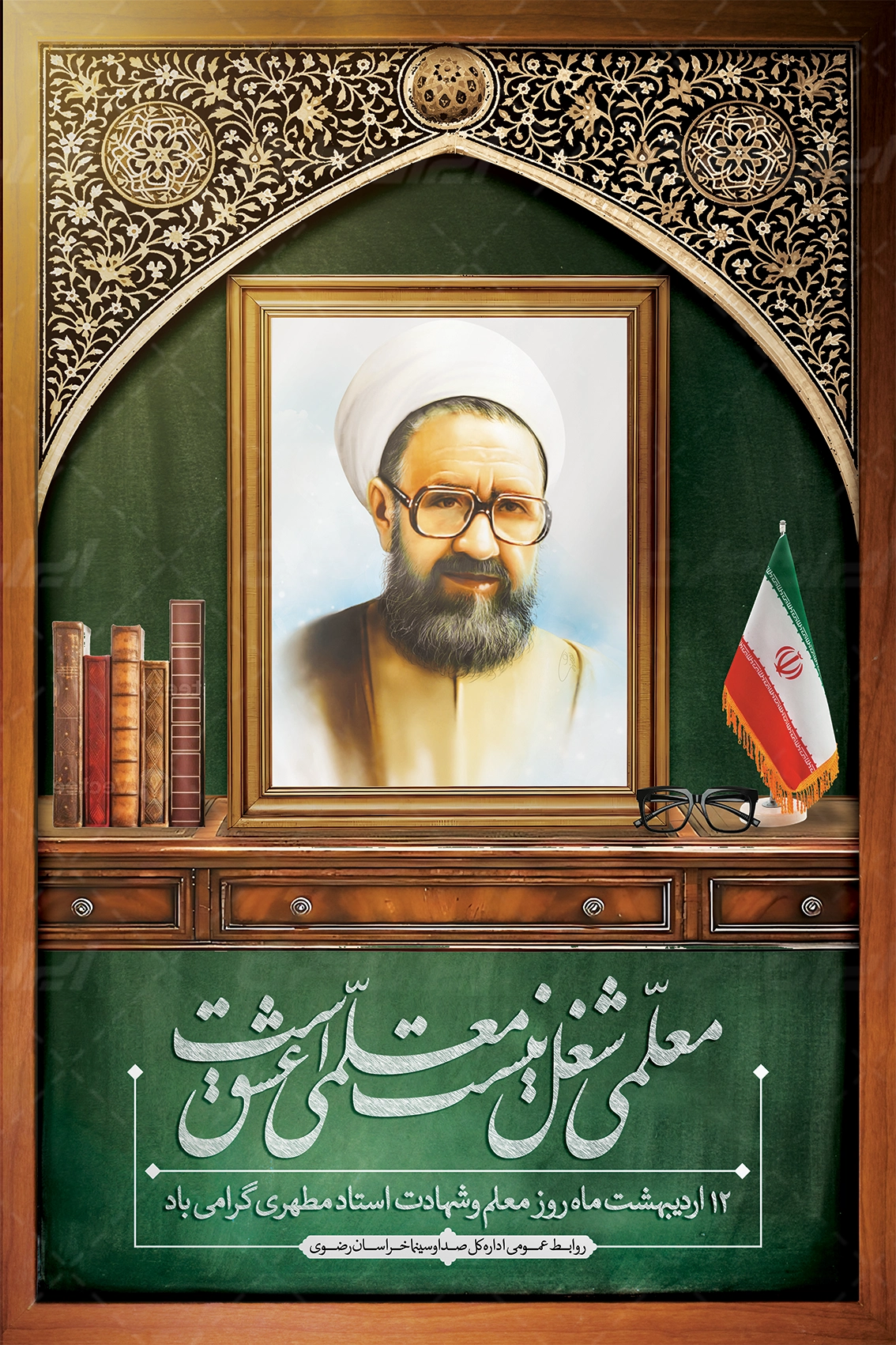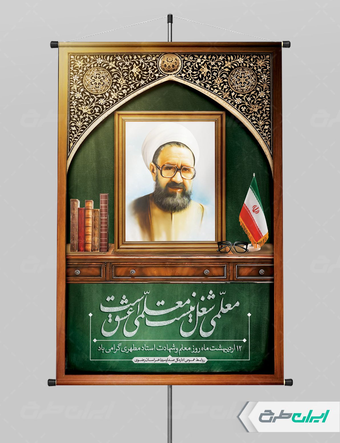 تصویر شهید مطهری و متن گرامیداشت روز معلم می باشد که توسط تیم ایران طرح طراحی شده است.