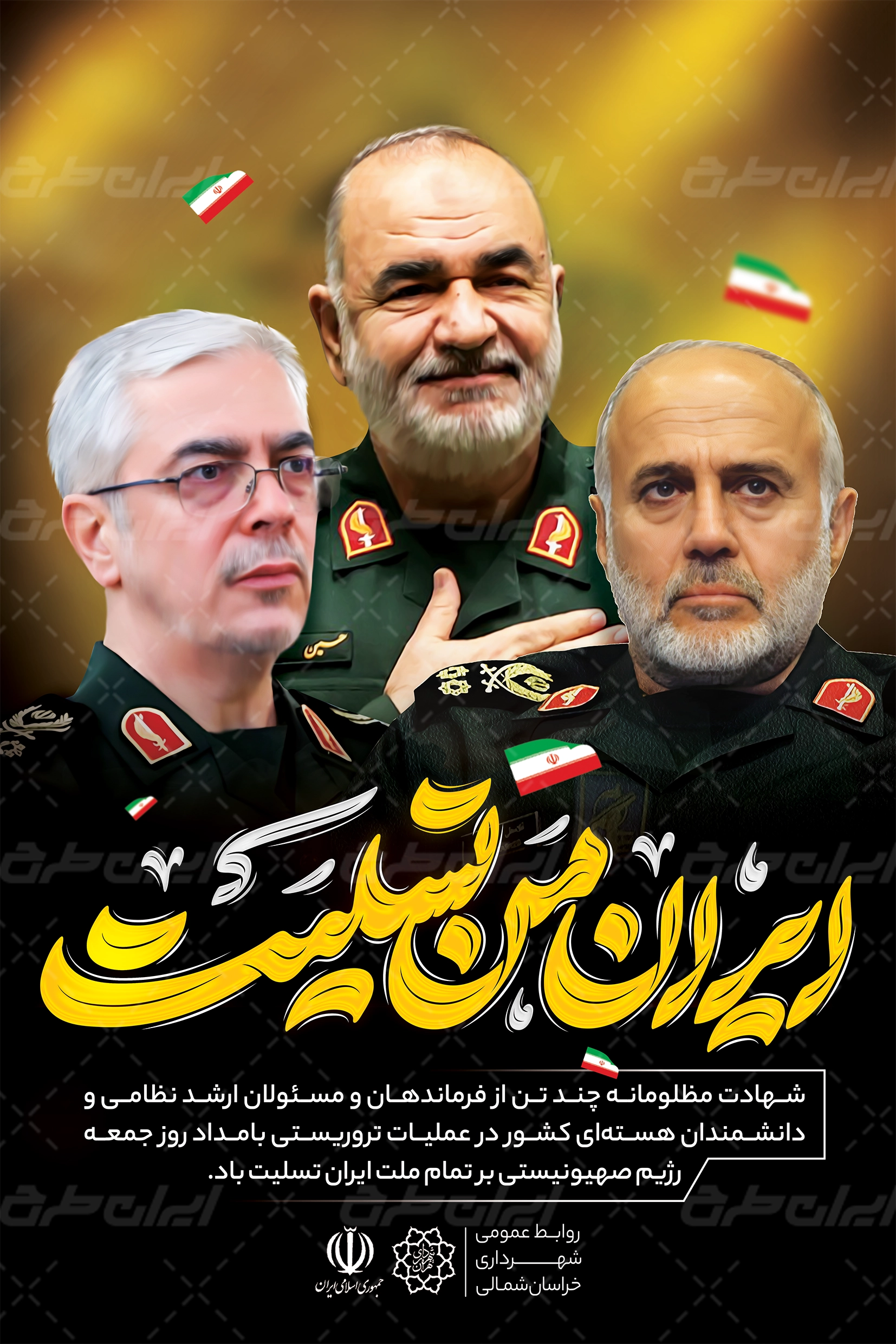 پوستر شهادت فرماندهان سپاه با تایپوگرافی ایران من تسلیت