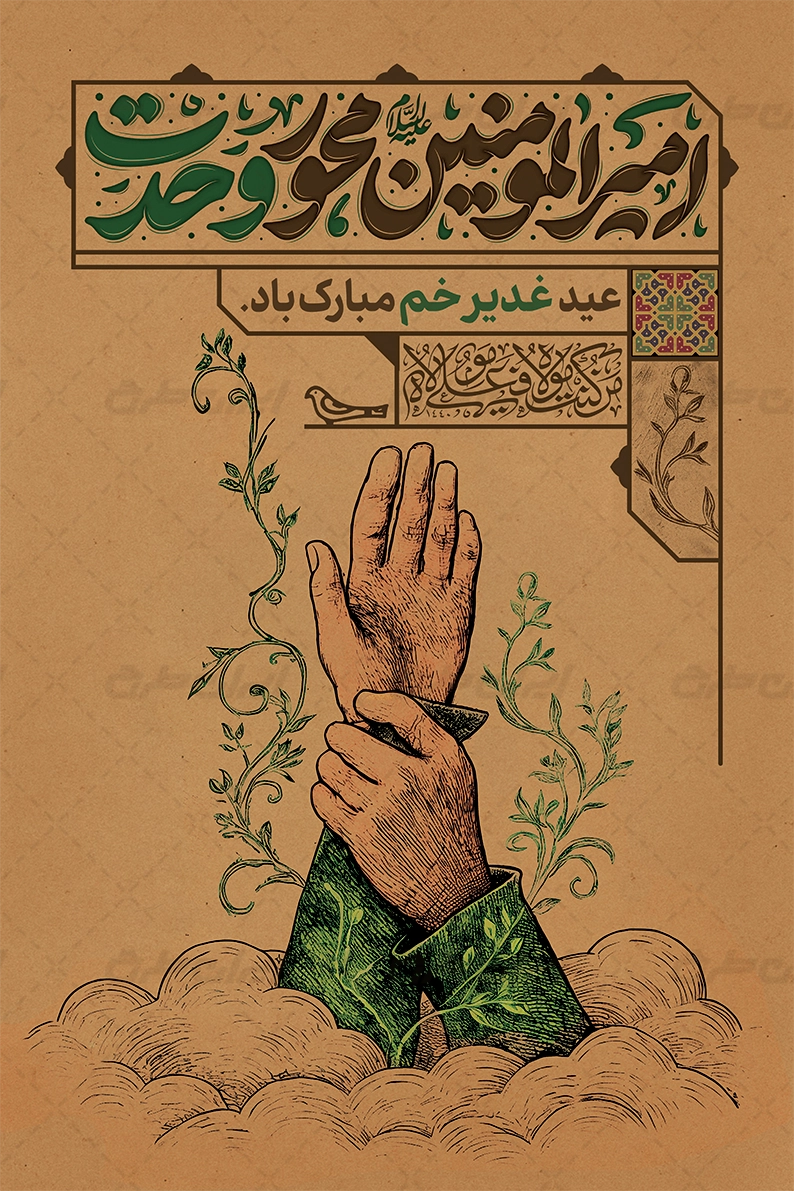 پوستر عید غدیر با تایپوگرافی امیرالمومنین محور وحدت