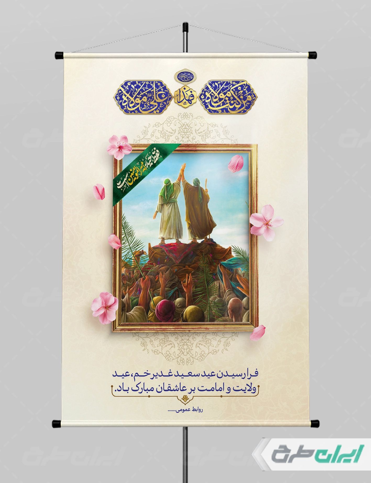 ضمنا به دلیل لایه باز بود طرح بنر عید غدیر می توانید با استفاده از نرم افزار فتوشاپ تغییرات دلخواه خود را اعمال کنید.