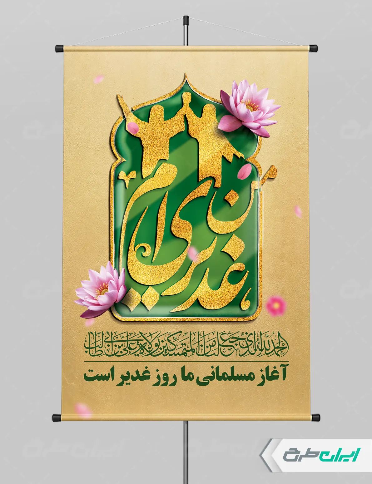 ضمنا به دلیل لایه باز بود طرح بنر عید غدیر می توانید با استفاده از نرم افزار فتوشاپ تغییرات دلخواه خود را اعمال کنید.