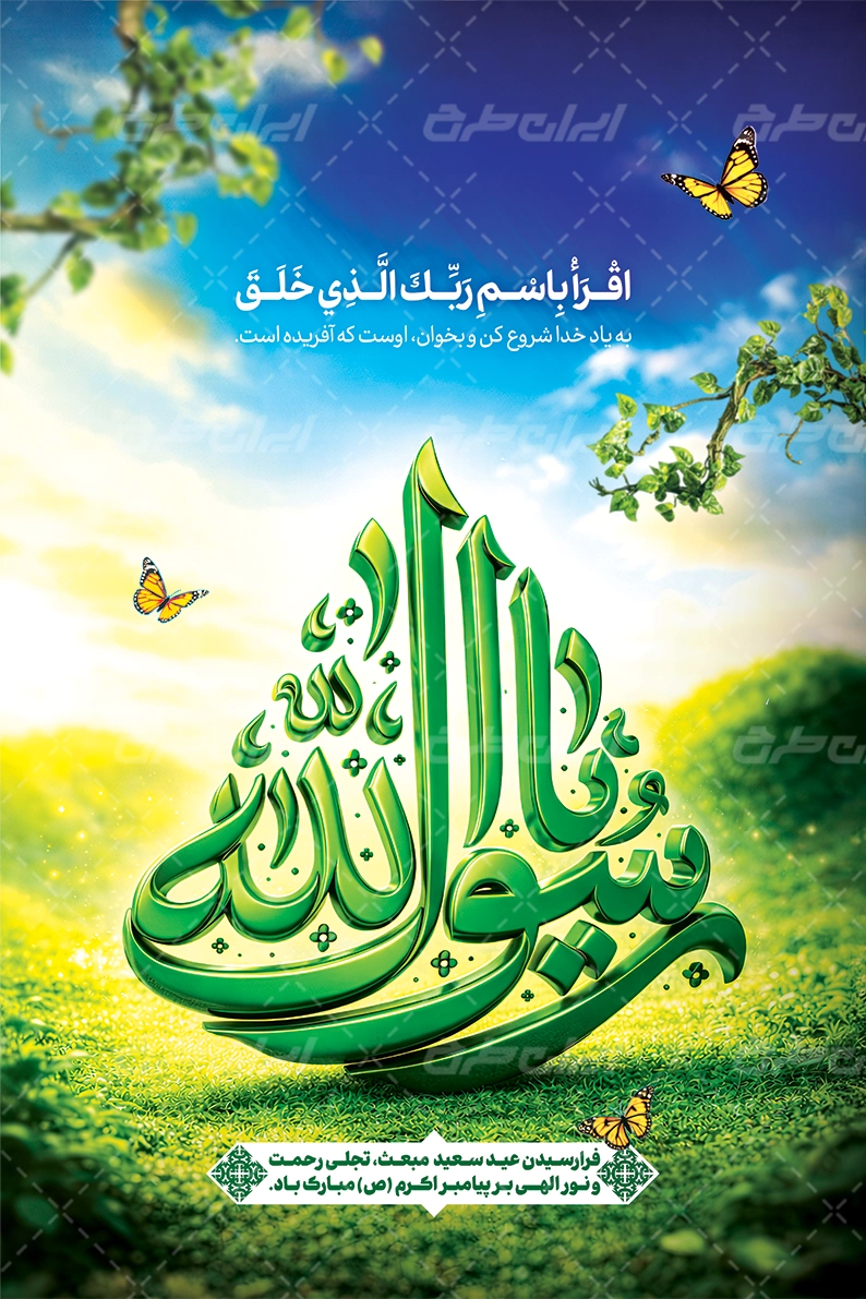 بنر عید مبعث، توسط تیم حرفه ای ایران طرح جهت استفاده کاربران سایت طراحی و به صورت لایه باز در دسترس کاربران قرار گرفته است.