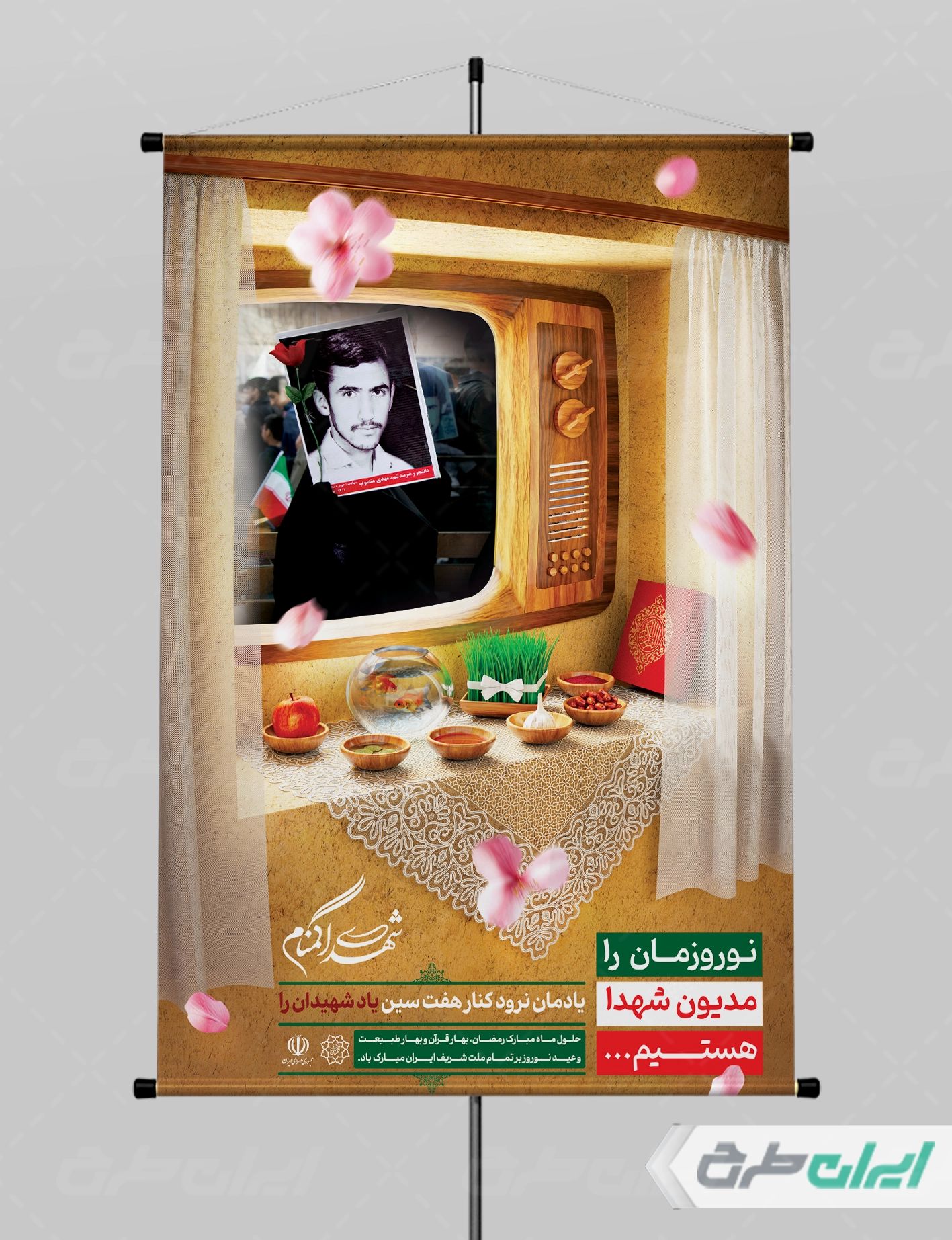 تصویر شهدا و متن گرامیداشت عید نوروز و ماه رمضان می باشد که توسط تیم ایران طرح طراحی شده است.