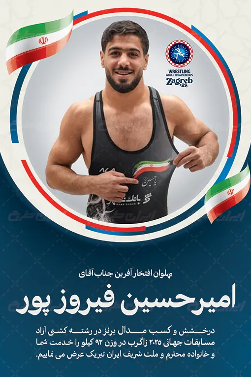 طرح پوستر تبریک کشتی زاگرب امیرحسین فیروز پور