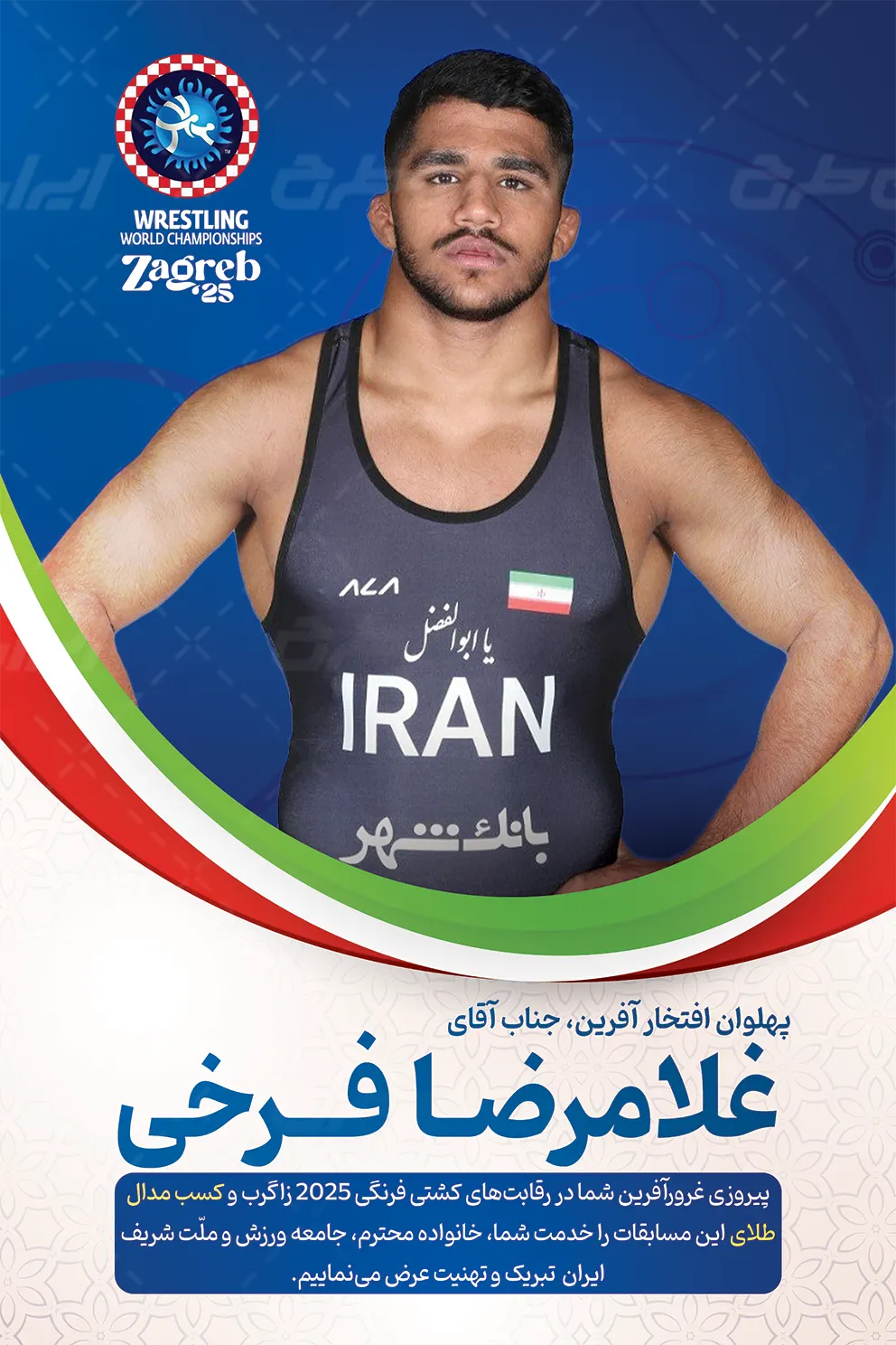 طرح پوستر تبریک قهرمانی کشتی غلامرضا فرخی