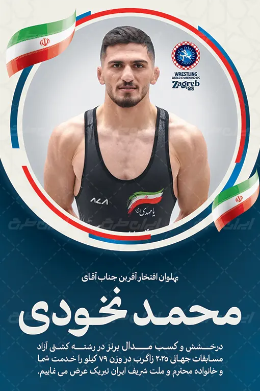طرح پوستر تبریک کشتی زاگرب محمد نخودی