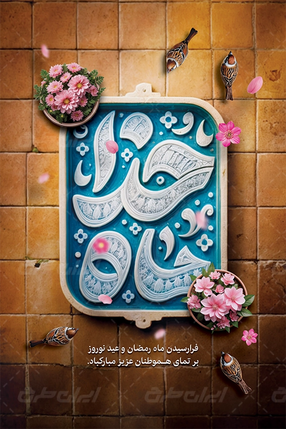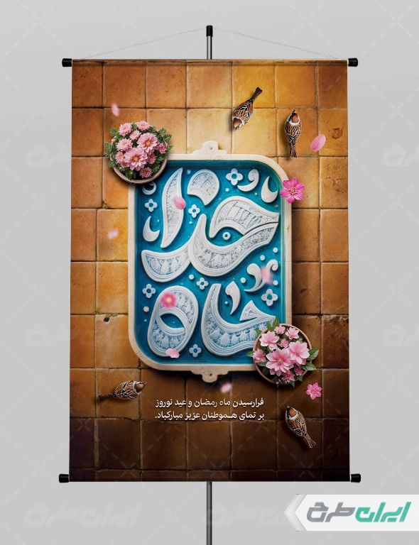 پوستر ماه رمضان و عید نوروز با تایپوگرافی ماه خدا