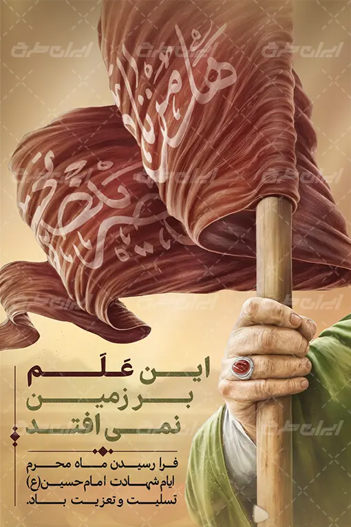 تصویر پرچم قرمز و متن تسلیت ایام محرم می باشد که توسط طراحان ایران طرح در نرم افزار فتوشاپ طراحی شده است.